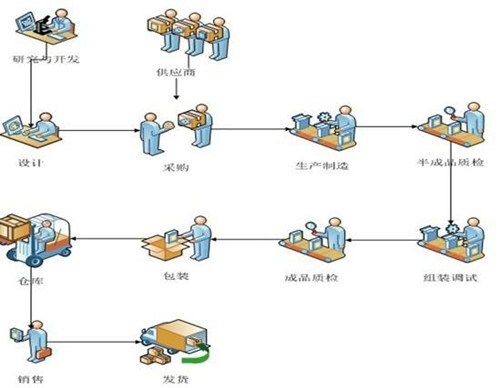下圖為“高低溫實(shí)驗(yàn)箱”生產(chǎn)工藝流程,從生產(chǎn)計(jì)劃——組織材料——實(shí)施生產(chǎn),然后是半成品——質(zhì)檢驗(yàn)收——組織總裝,最后是成品驗(yàn)收數(shù)量——包裝裝箱——試驗(yàn)箱出倉。