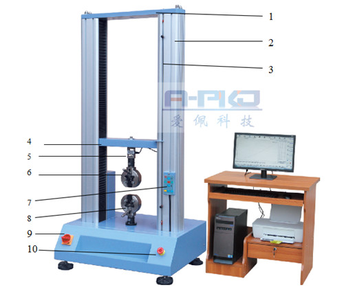 1、拉力機(jī)上橫梁 2、拉力機(jī)支柱 3、機(jī)械限位桿 4、移動橫檔